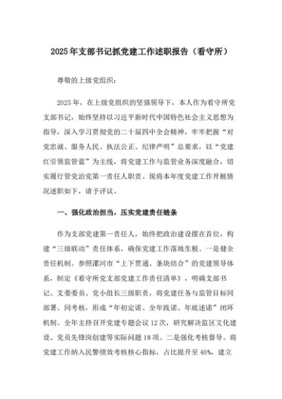 / 【七哥公文】2025年:2025年支部书记抓党建工作述职报告(看守所)+更多免费公文+VX:QiGeGongWen2024