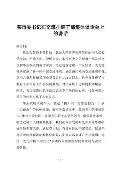 / 【七哥公文】2025年:某市委书记在交流挂职干部集体谈话会上的讲话+更多免费公文+VX:QiGeGongWen2024