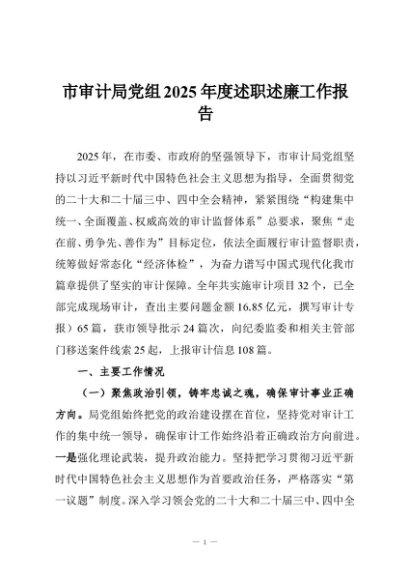 / 【七哥公文】2025年:市审计局党组2025年度述职述廉工作报告+更多免费公文+VX:QiGeGongWen2024