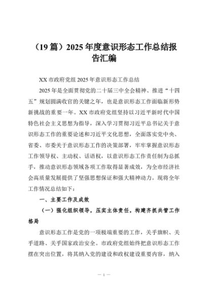 / 【七哥公文】2025年:(19篇)2025年度意识形态工作总结报告汇编+更多免费公文+VX:QiGeGongWen2024