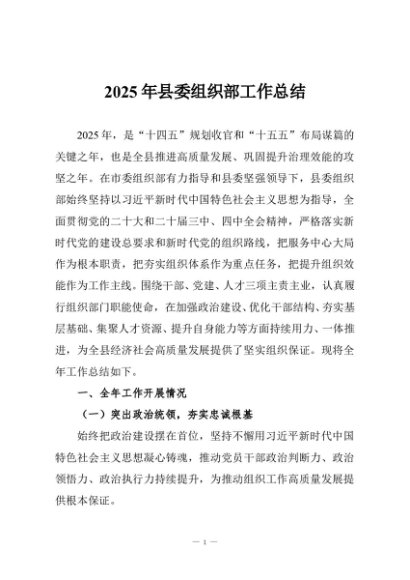 / 【七哥公文】2025年:2025年县委组织部工作总结+更多免费公文+VX:QiGeGongWen2024