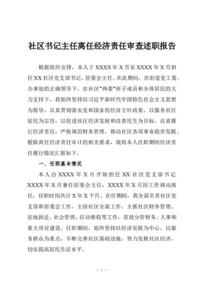 / 【七哥公文】2025年:社区书记主任离任经济责任审查述职报告+更多免费公文+VX:QiGeGongWen2024