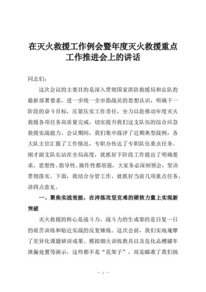 【七哥公文】2025年:在灭火救援工作例会暨年度灭火救援重点工作推进会上的讲话+更多免费公文+VX:QiGeGongWen2024