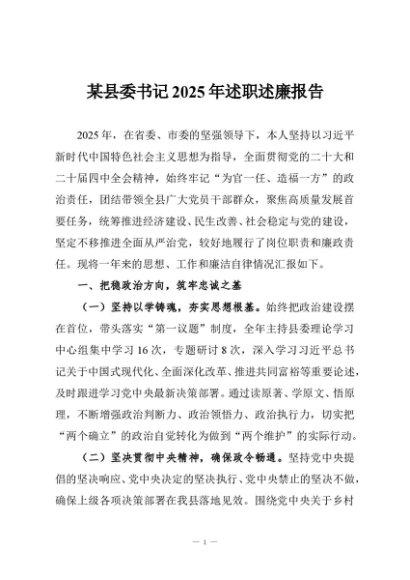 / 【七哥公文】2025年:某县委书记2025年述职述廉报告+更多免费公文+VX:QiGeGongWen2024