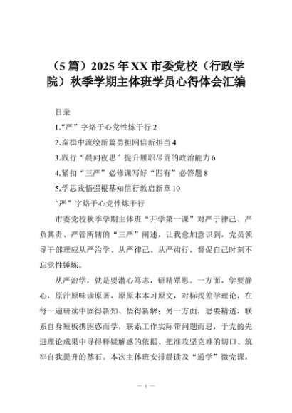 【七哥公文】2025年:(5篇)2025年XX市委党校(行政学院)秋季学期主体班学员心得体会汇编+更多免费公文+VX:QiGeGongWen2024
