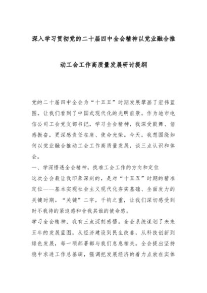 【七哥公文】2025年:深入学习贯彻党的二十届四中全会精神以党业融合推动工会工作高质量发展研讨提纲_副本+更多免费公文+VX:QiGeGongWen2024