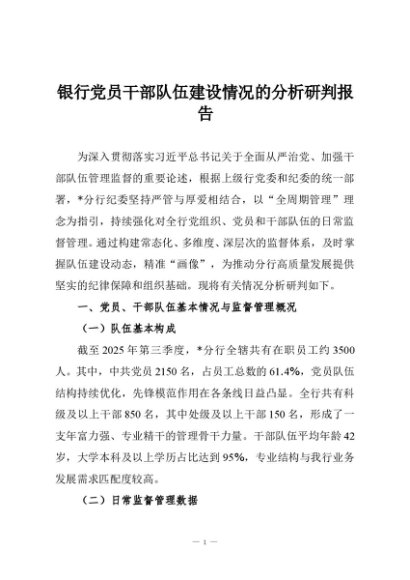 / 【七哥公文】2025年:银行党员干部队伍建设情况的分析研判报告+更多免费公文+VX:QiGeGongWen2024