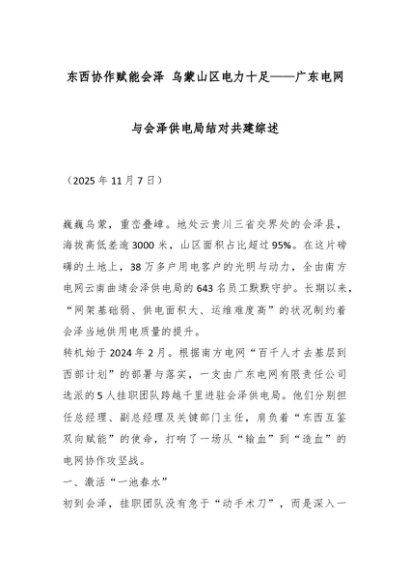 【七哥公文】2025年:东西协作赋能会泽 乌蒙山区电力十足——广东电网与会泽供电局结对共建综述_副本+更多免费公文+VX:QiGeGongWen2024