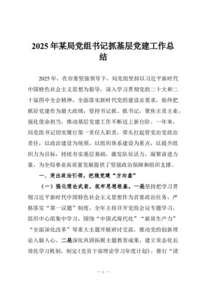 / 【七哥公文】2025年:2025年某局党组书记抓基层党建工作总结+更多免费公文+VX:QiGeGongWen2024