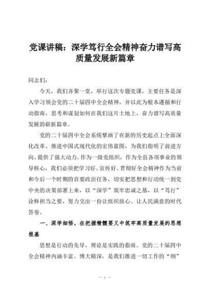 / 【七哥公文】2025年:党课讲稿:深学笃行全会精神奋力谱写高质量发展新篇章+更多免费公文+VX:QiGeGongWen2024