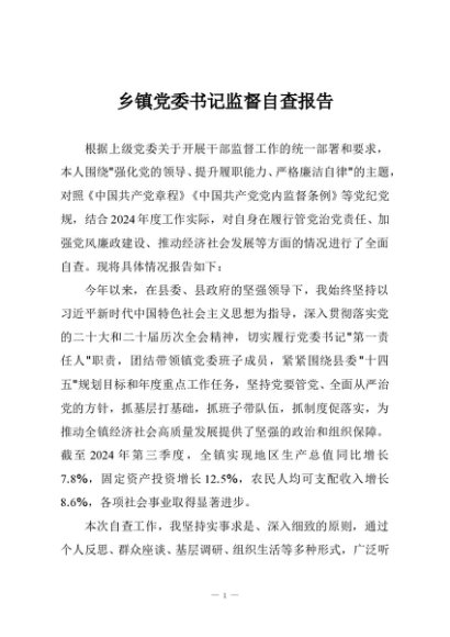 / 【七哥公文】2025年:乡镇党委书记监督自查报告+更多免费公文+VX:QiGeGongWen2024