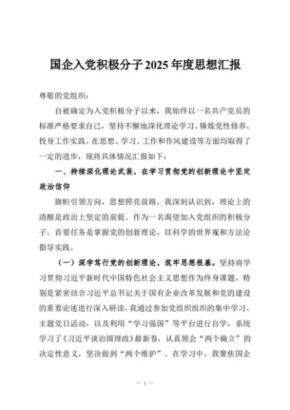 / 【七哥公文】2025年:国企入党积极分子2025年度思想汇报+更多免费公文+VX:QiGeGongWen2024