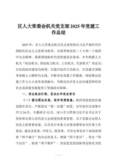/ 【七哥公文】2025年:区人大常委会机关党支部2025年党建工作总结+更多免费公文+VX:QiGeGongWen2024