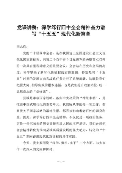 【七哥公文】2025年:党课讲稿:深学笃行四中全会精神奋力谱写“十五五”现代化新篇章+更多免费公文+VX:QiGeGongWen2024