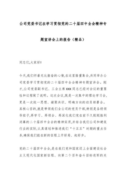 【七哥公文】2025年:公司党委书记在学习贯彻党的二十届四中全会精神专题宣讲会上的报告(精品)_副本+更多免费公文+VX:QiGeGongWen2024