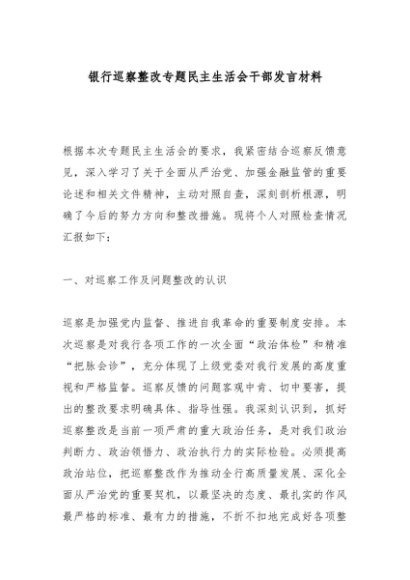 / 【七哥公文】2025年:银行巡察整改专题民主生活会干部发言材料_副本+更多免费公文+VX:QiGeGongWen2024