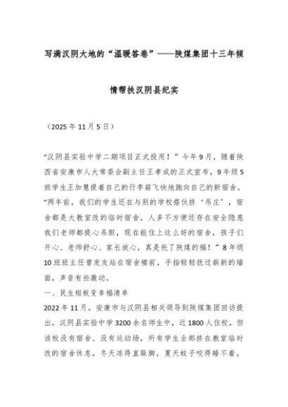 【七哥公文】2025年:写满汉阴大地的“温暖答卷”——陕煤集团十三年倾情帮扶汉阴县纪实_副本+更多免费公文+VX:QiGeGongWen2024