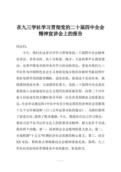 【七哥公文】2025年:在九三学社学习贯彻党的二十届四中全会精神宣讲会上的报告+更多免费公文+VX:QiGeGongWen2024