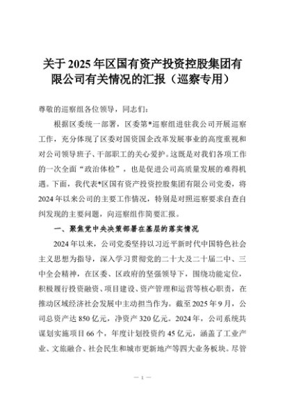 【七哥公文】2025年:关于2025年区国有资产投资控股集团有限公司有关情况的汇报(巡察专用)+更多免费公文+VX:QiGeGongWen2024
