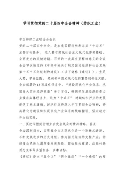 【七哥公文】2025年:学习贯彻党的二十届四中全会精神(纺织工业)_副本+更多免费公文+VX:QiGeGongWen2024