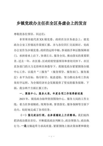 / 【七哥公文】2025年:乡镇党政办主任在全区务虚会上的发言+更多免费公文+VX:QiGeGongWen2024