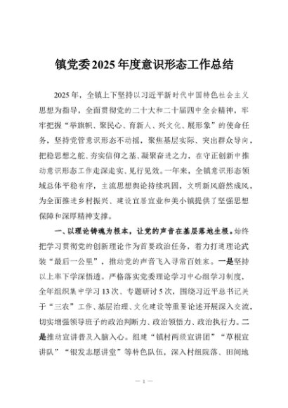 / 【七哥公文】2025年:镇党委2025年度意识形态工作总结+更多免费公文+VX:QiGeGongWen2024