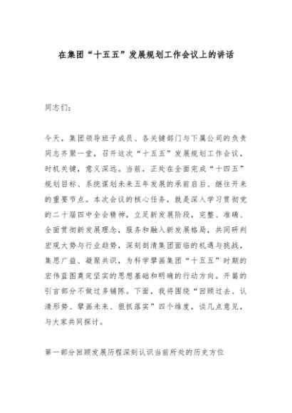 / 【七哥公文】2025年:在集团“十五五”发展规划工作会议上的讲话_副本+更多免费公文+VX:QiGeGongWen2024