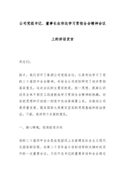 【七哥公文】2025年:公司党组书记、董事长在传达学习贯彻全会精神会议上的讲话发言_副本+更多免费公文+VX:QiGeGongWen2024