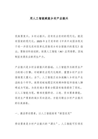 / 【七哥公文】2025年:用人工智能赋能乡村产业振兴_副本+更多免费公文+VX:QiGeGongWen2024
