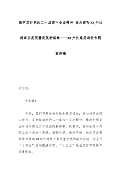 【七哥公文】2025年:深学笃行党的二十届四中全会精神 奋力谱写XX州住建事业高质量发展新篇章——XX州住建局局长专题宣讲稿_副本+更多免费公文+VX:QiGeGongWen2024