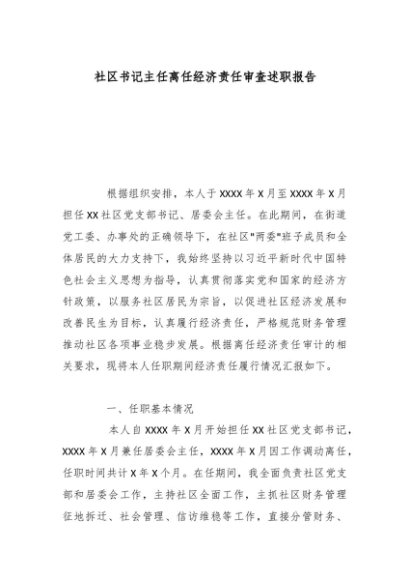 / 【七哥公文】2025年:社区书记主任离任经济责任审查述职报告_副本+更多免费公文+VX:QiGeGongWen2024