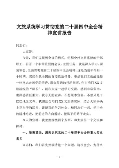 / 【七哥公文】2025年:文旅系统学习贯彻党的二十届四中全会精神宣讲报告+更多免费公文+VX:QiGeGongWen2024