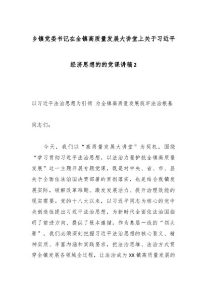 【七哥公文】2025年:乡镇党委书记在全镇高质量发展大讲堂上关于总书记经济思想的的党课讲稿2_副本+更多免费公文+VX:QiGeGongWen2024