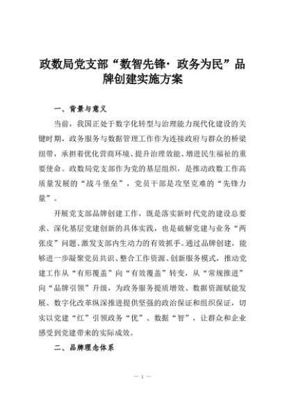 【七哥公文】2025年:政数局党支部“数智先锋・政务为民”品牌创建实施方案+更多免费公文+VX:QiGeGongWen2024