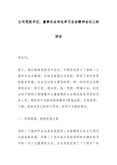 【七哥公文】2025年:公司党组书记、董事长在传达学习全会精神会议上的讲话_副本+更多免费公文+VX:QiGeGongWen2024