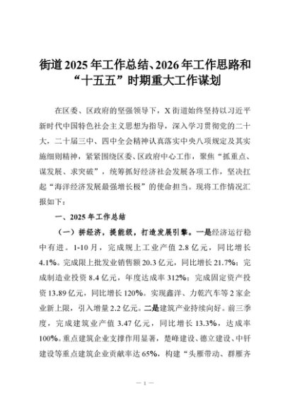 【七哥公文】2025年:街道2025年工作总结、2026年工作思路和“十五五”时期重大工作谋划+更多免费公文+VX:QiGeGongWen2024