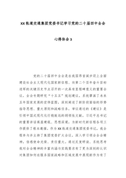 【七哥公文】2025年:XX轨道交通集团党委书记学习党的二十届四中全会心得体会3_副本+更多免费公文+VX:QiGeGongWen2024