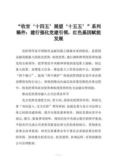 【七哥公文】2025年:“收官‘十四五’展望‘十五五’”系列稿件:建行强化党建引领,红色基因赋能发展+更多免费公文+VX:QiGeGongWen2024
