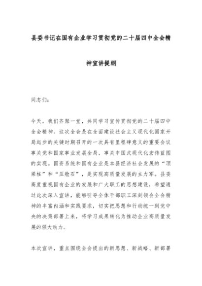 【七哥公文】2025年:县委书记在国有企业学习贯彻党的二十届四中全会精神宣讲提纲_副本+更多免费公文+VX:QiGeGongWen2024