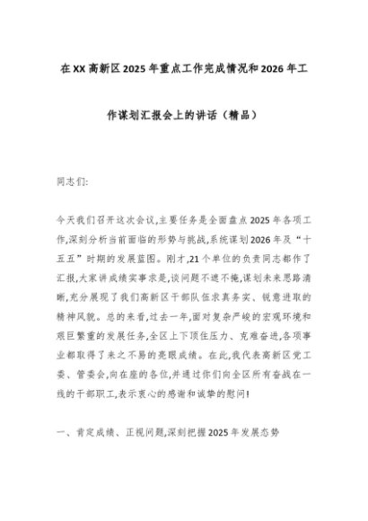 【七哥公文】2025年:在XX高新区2025年重点工作完成情况和2026年工作谋划汇报会上的讲话(精品)_副本+更多免费公文+VX:QiGeGongWen2024