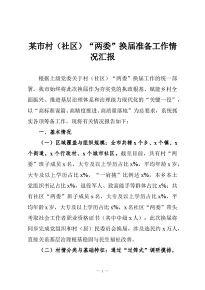 / 【七哥公文】2025年:某市村(社区)“两委”换届准备工作情况汇报+更多免费公文+VX:QiGeGongWen2024
