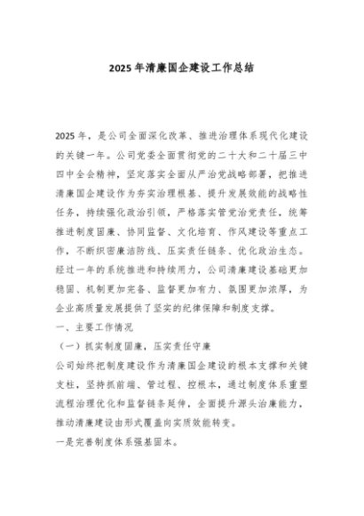 / 【七哥公文】2025年:2025年清廉国企建设工作总结_副本+更多免费公文+VX:QiGeGongWen2024