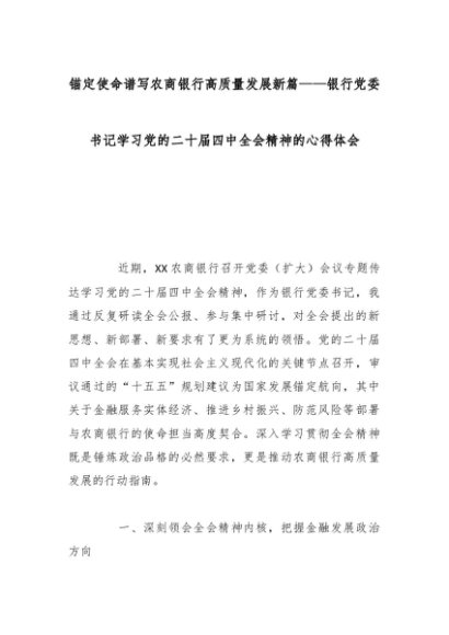 【七哥公文】2025年:锚定使命谱写农商银行高质量发展新篇——银行党委书记学习党的二十届四中全会精神的心得体会_副本+更多免费公文+VX:QiGeGongWen2024
