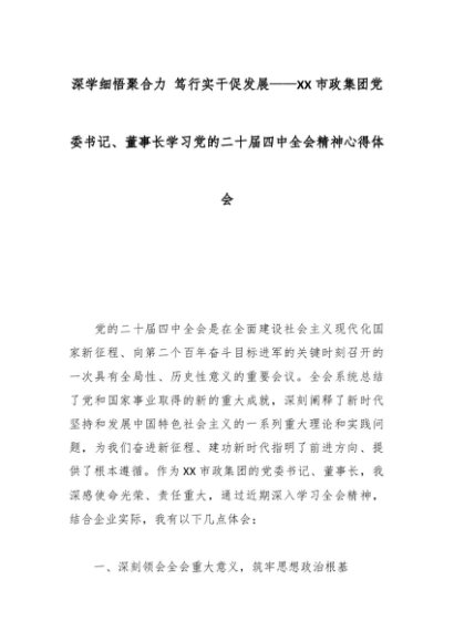 【七哥公文】2025年:深学细悟聚合力 笃行实干促发展——XX市政集团党委书记、董事长学习党的二十届四中全会精神心得体会_副本+更多免费公文+VX:QiGeGongWen2024