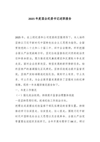 / 【七哥公文】2025年:2025年度国企纪委书记述职报告_副本+更多免费公文+VX:QiGeGongWen2024