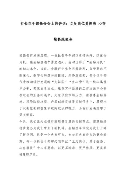 【七哥公文】2025年:行长在干部任命会上的讲话:立足岗位勇担当 心存敬畏践使命_副本+更多免费公文+VX:QiGeGongWen2024