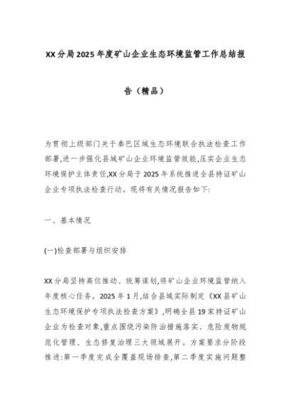 【七哥公文】2025年:XX分局2025年度矿山企业生态环境监管工作总结报告(精品)_副本+更多免费公文+VX:QiGeGongWen2024