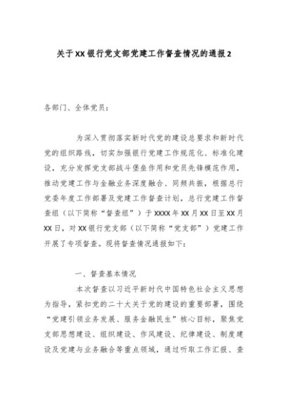 【七哥公文】2025年:关于XX银行党支部党建工作督查情况的通报2_副本+更多免费公文+VX:QiGeGongWen2024