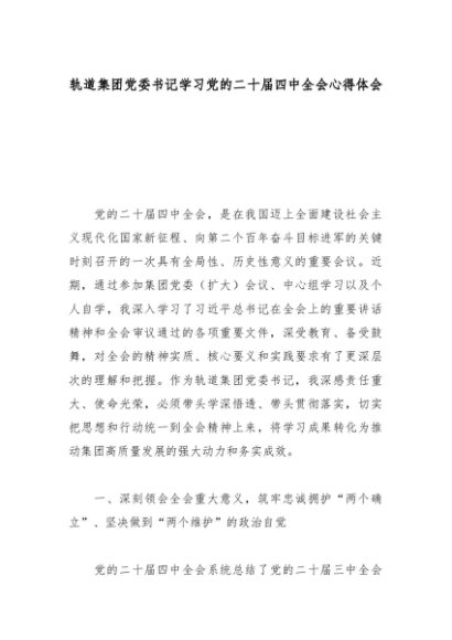 【七哥公文】2025年:轨道集团党委书记学习党的二十届四中全会心得体会_副本+更多免费公文+VX:QiGeGongWen2024