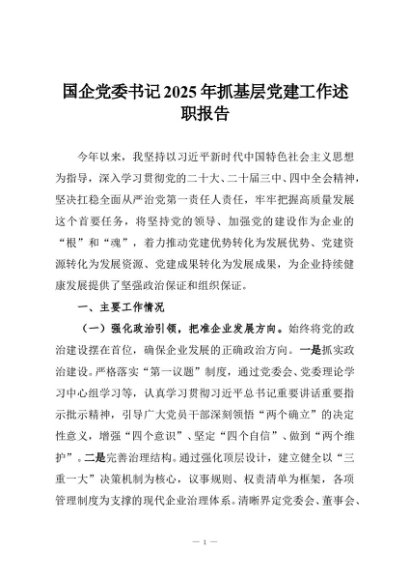 / 【七哥公文】2025年:国企党委书记2025年抓基层党建工作述职报告+更多免费公文+VX:QiGeGongWen2024